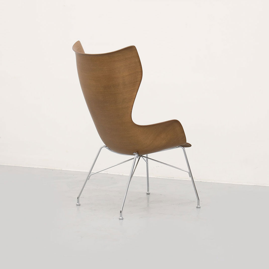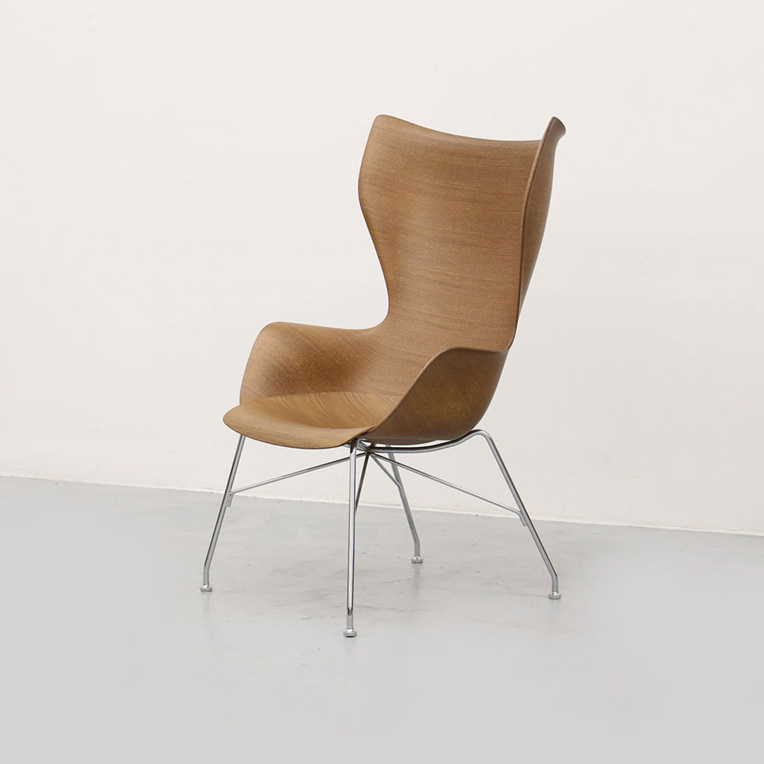 스마트 우드 컬렉션으로 출시하고 필립스탁이 디자인한 케이 우드 체어입니다. 2차원이었던 소재에 3차원 형태를 부여한 카르텔의 결과물이며 특수 제작된 몰드로 원목 가공한 카르텔의 특허 기술을 이용하여 제작된 모델입니다.
