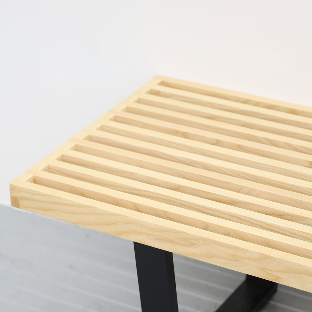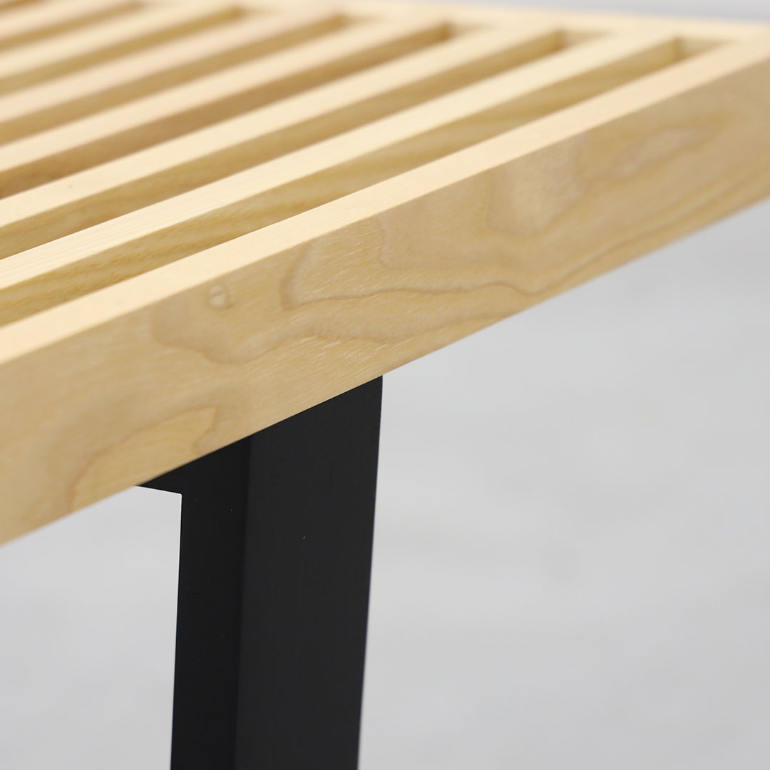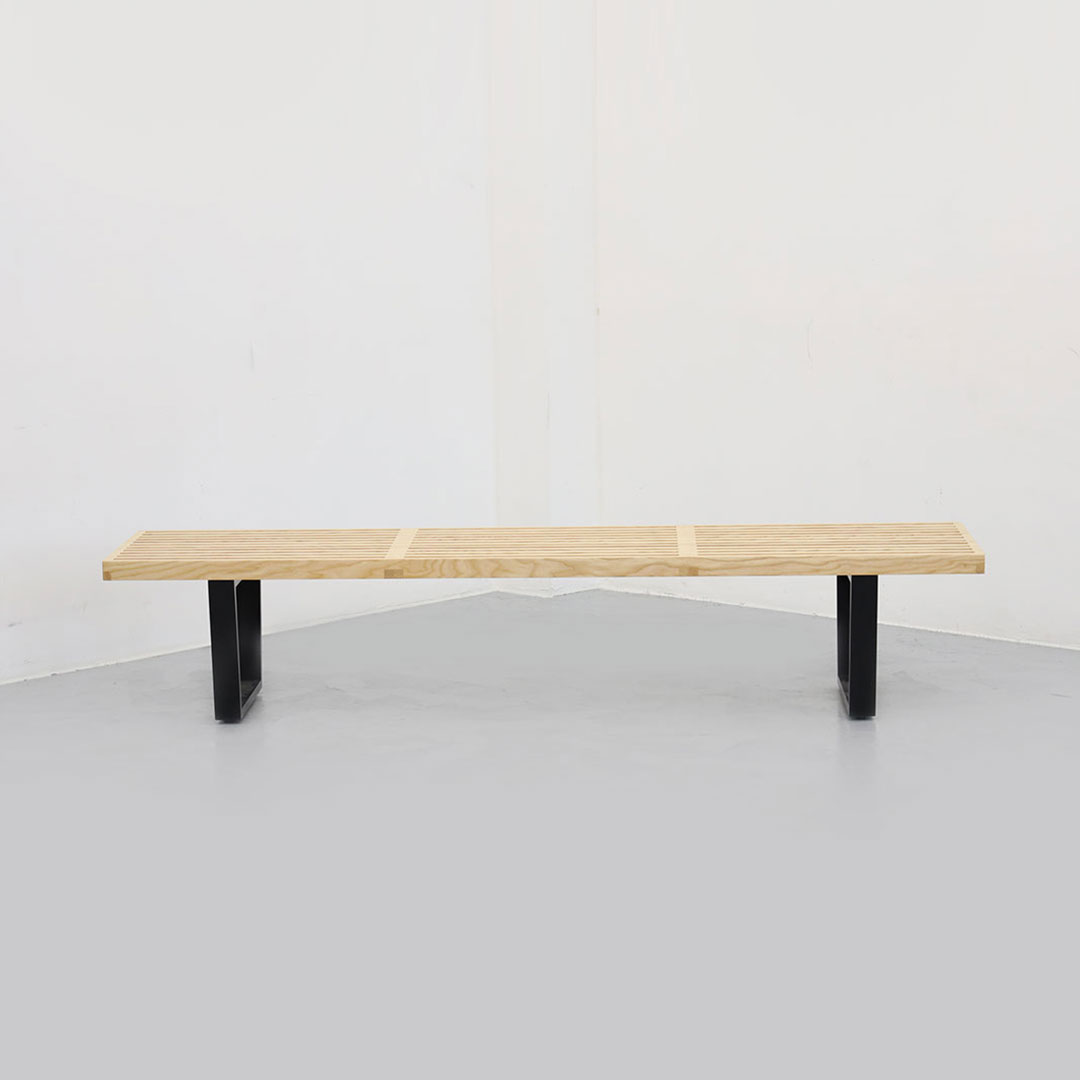 깔끔하고 직선적인 디자인의 벤치로 디자이너 조지 넬슨의 건축적 배경이 잘 보이는 모델입니다.